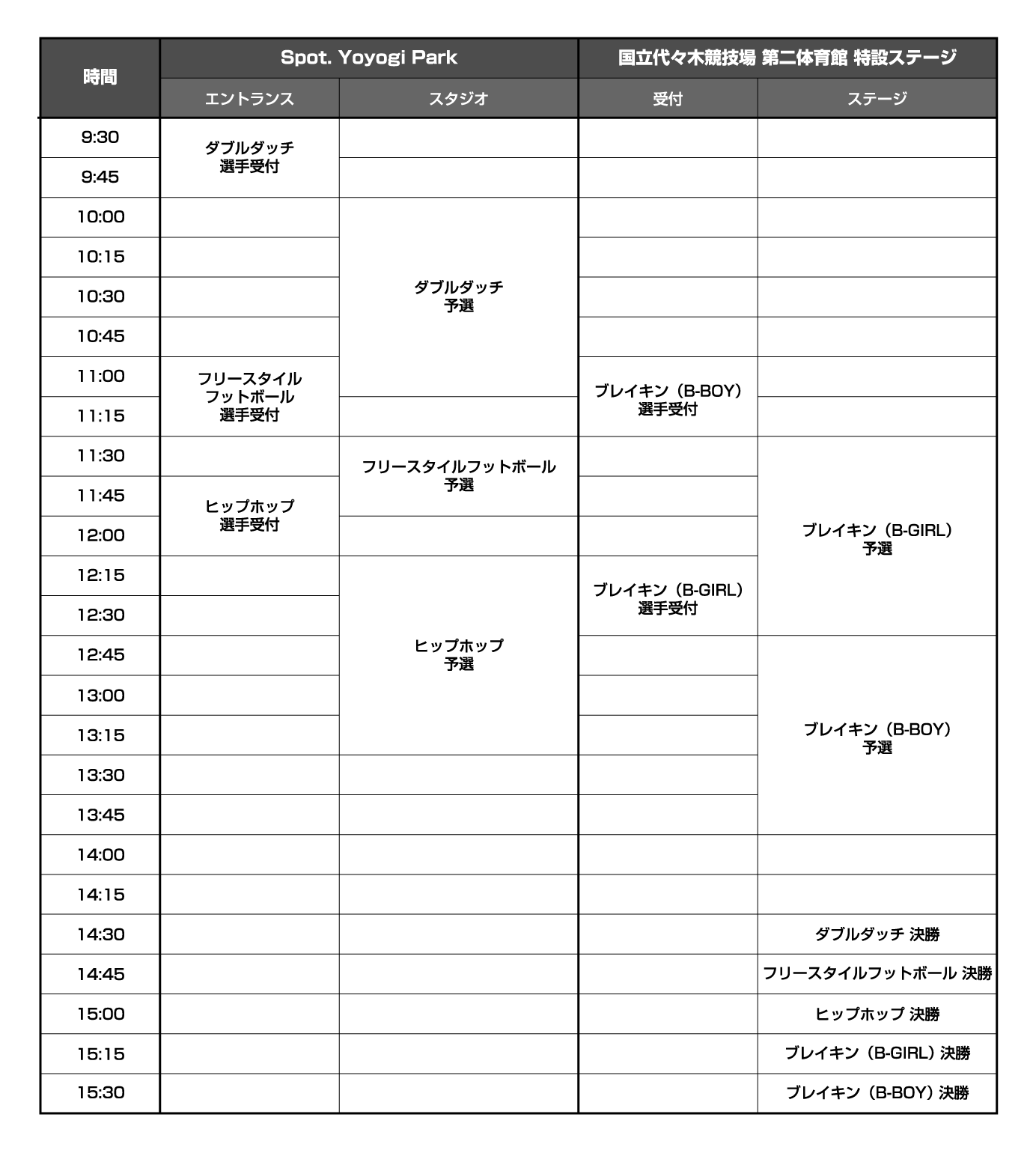 競技:ブレイキン(男子・女子)/ ダブルダッチ / ヒップホップ / フリースタイルフットボール